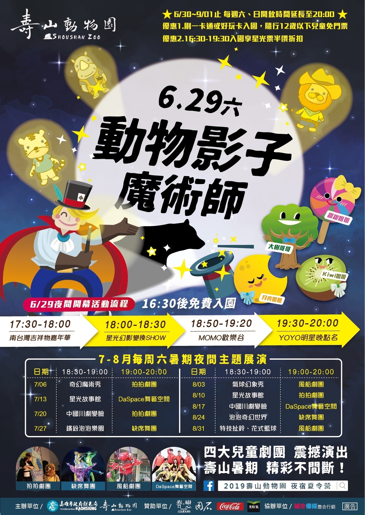 (一)壽山動物園訂於6月29日暑期夜間開園隆重開幕系列活動,邀請兩大兒童天團YOYO家族及MOMO家族陪小朋友歡樂一整晚。