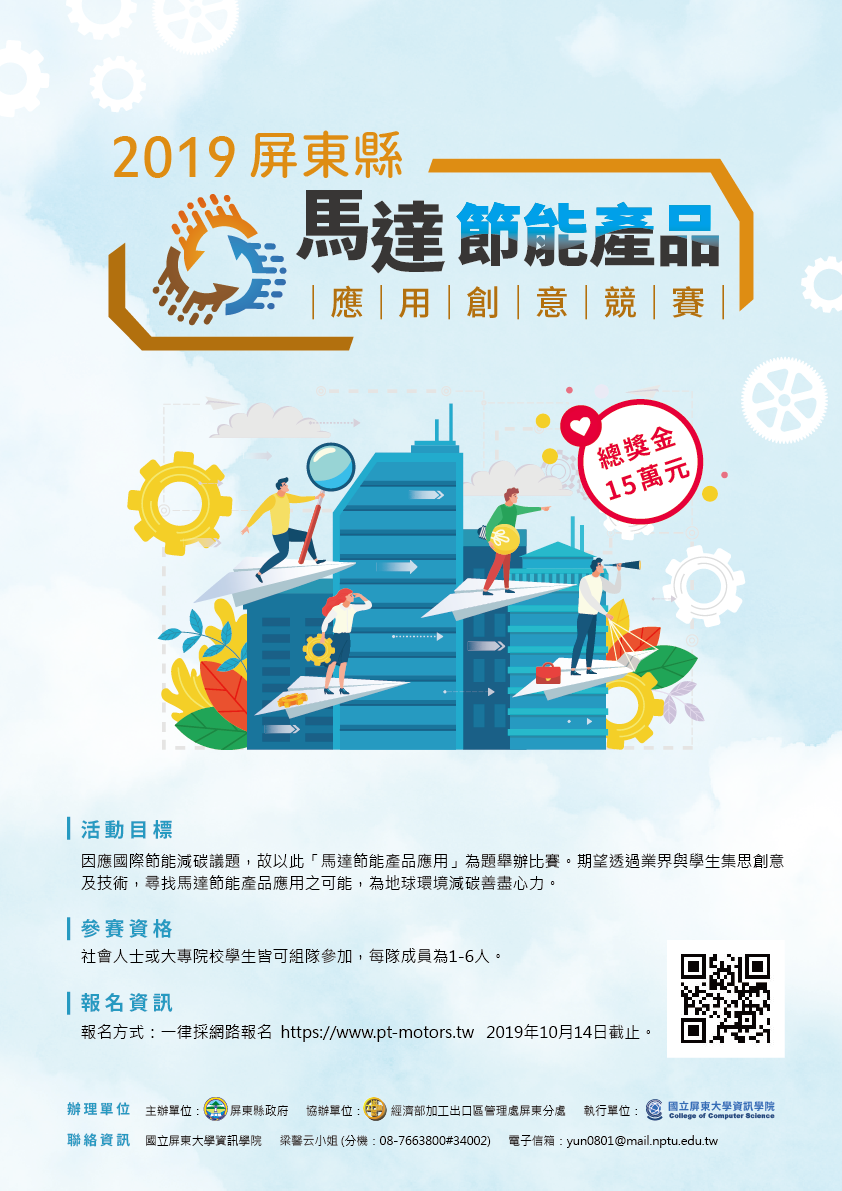 | 2019/07/24 國立屏東大學 資訊學院「屏東縣馬達節能產品應用創意競賽」 |