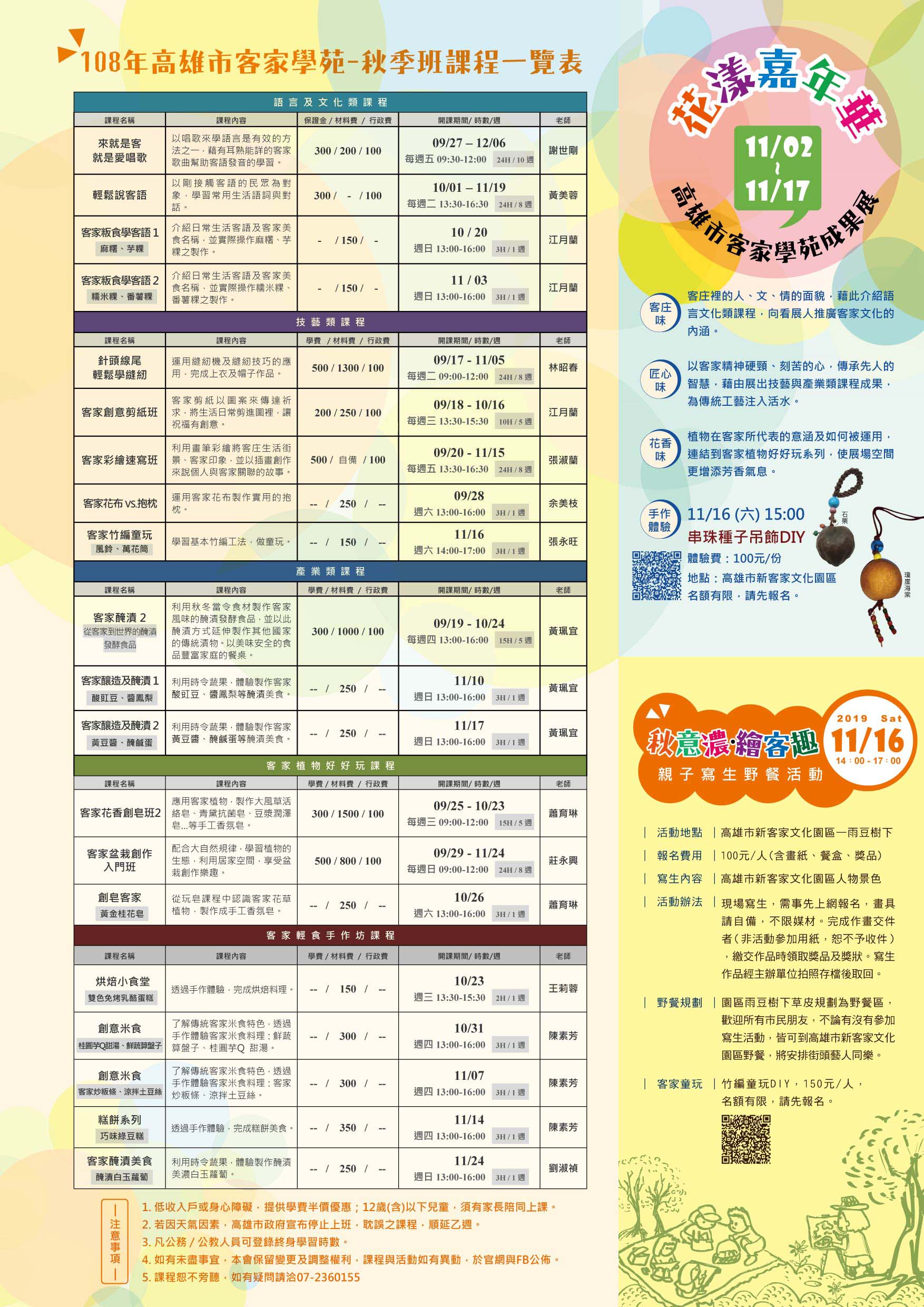| 2019/09/11 高雄市政府客家事務委員會「108年度高雄市客家學苑秋季班」 |