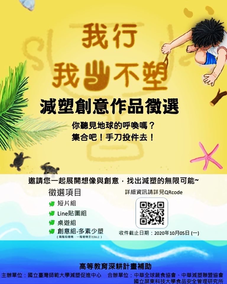 | 2020/06/29 國立臺灣師範大學辦理2020「我行,我4不塑」減塑作品徵件競賽活動 |