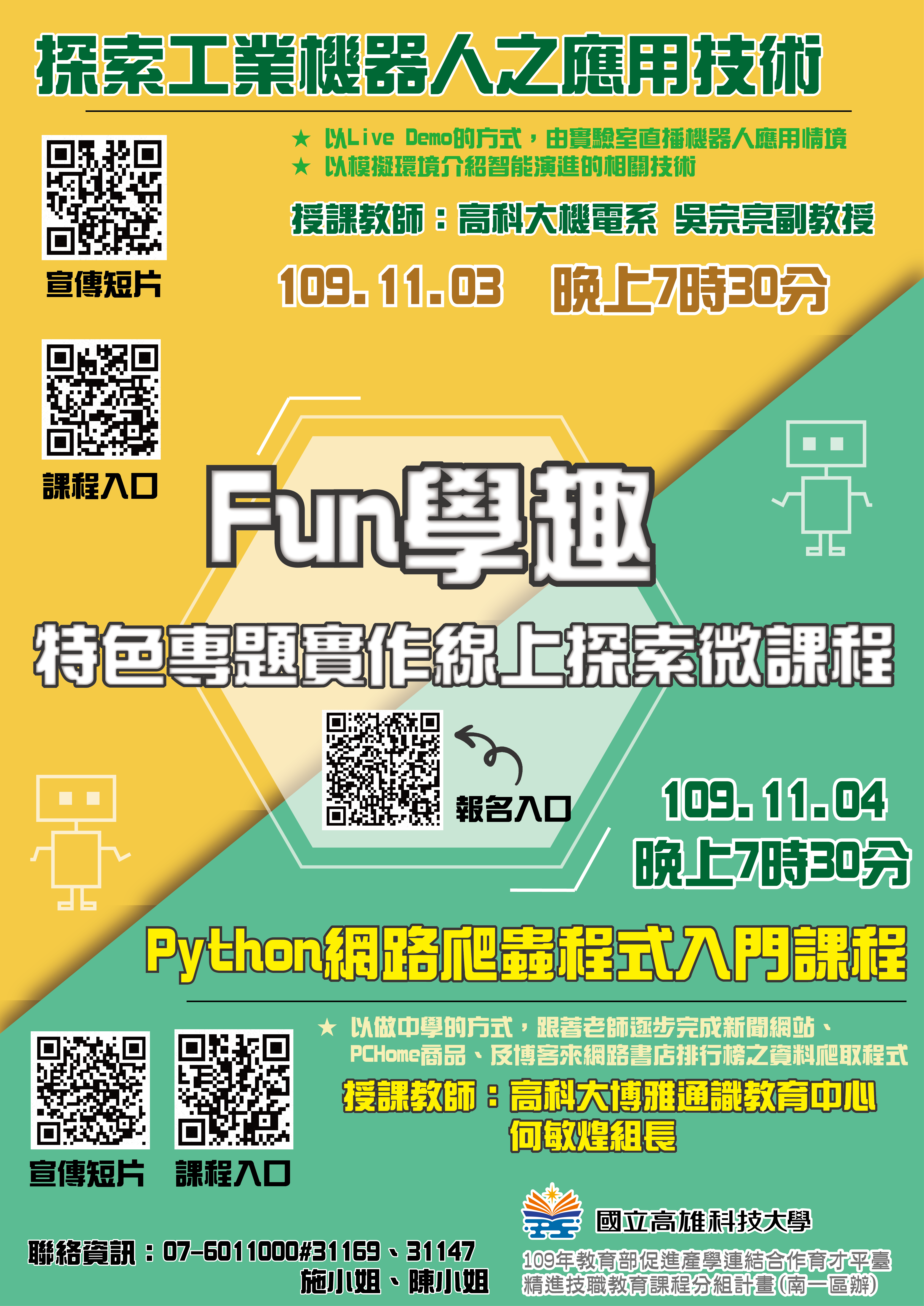 | 2020/10/21 「Fun學趣-特色專題實作線上探索微課程」 |