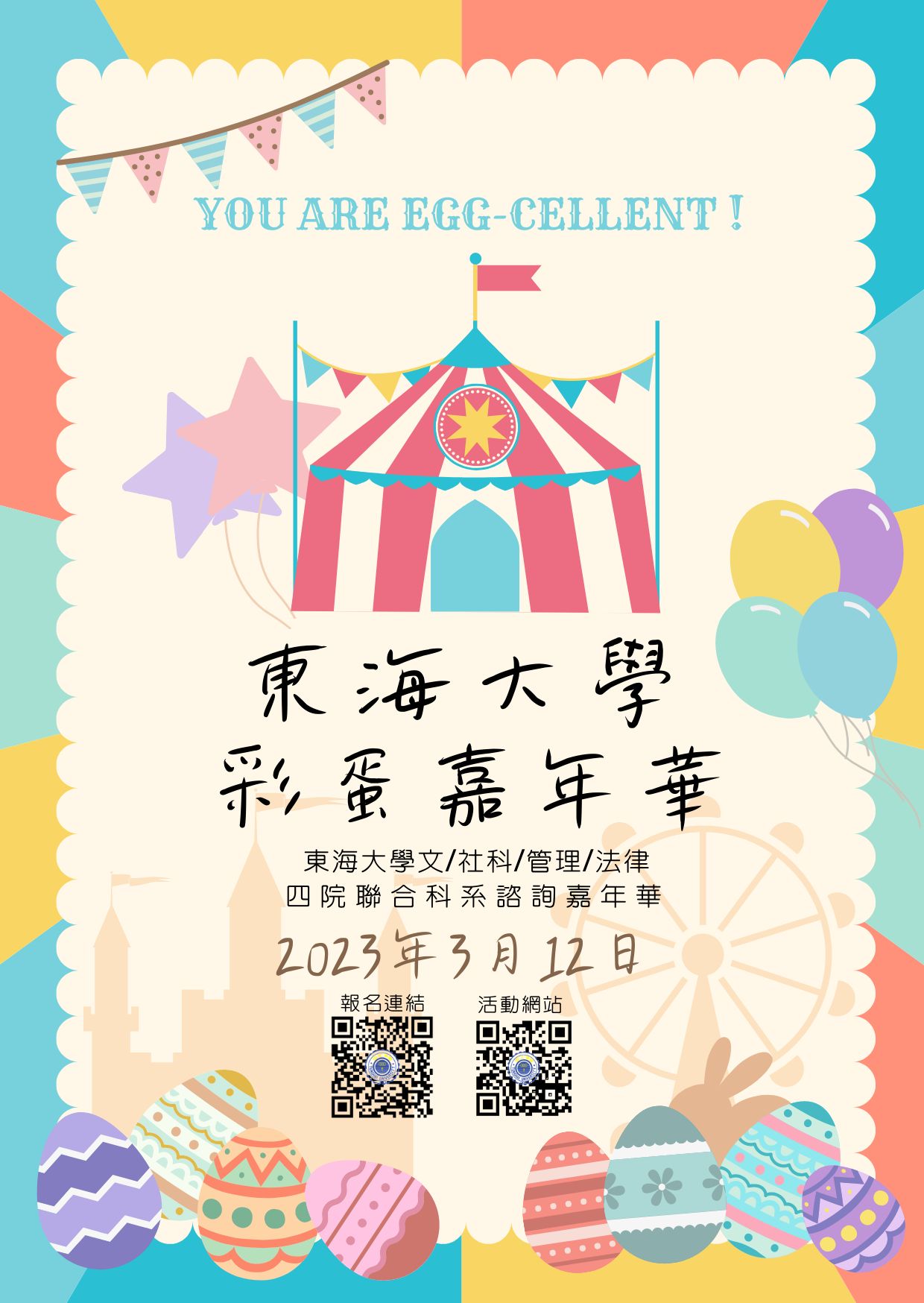 「2023東海大學彩蛋嘉年華:文/社科/管理/法律四學院聯合科系諮詢嘉年華」