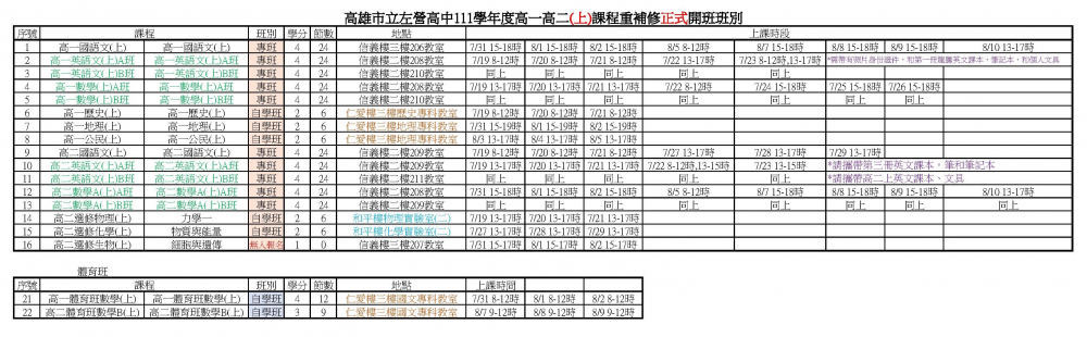 附加檔案:111-2 高一高二(上)重補修正式開班班別(公告).pdf (64.68 KB)