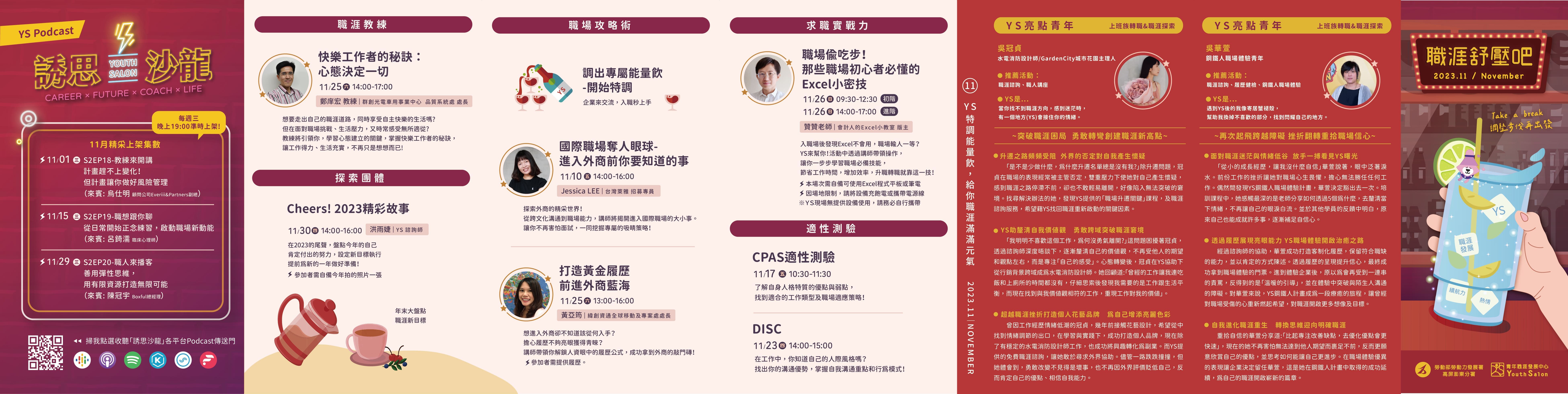 | 2023/11/02 「青年職涯發展中心」(Youth Salon,以下簡 稱YS)112年11月活動DM |