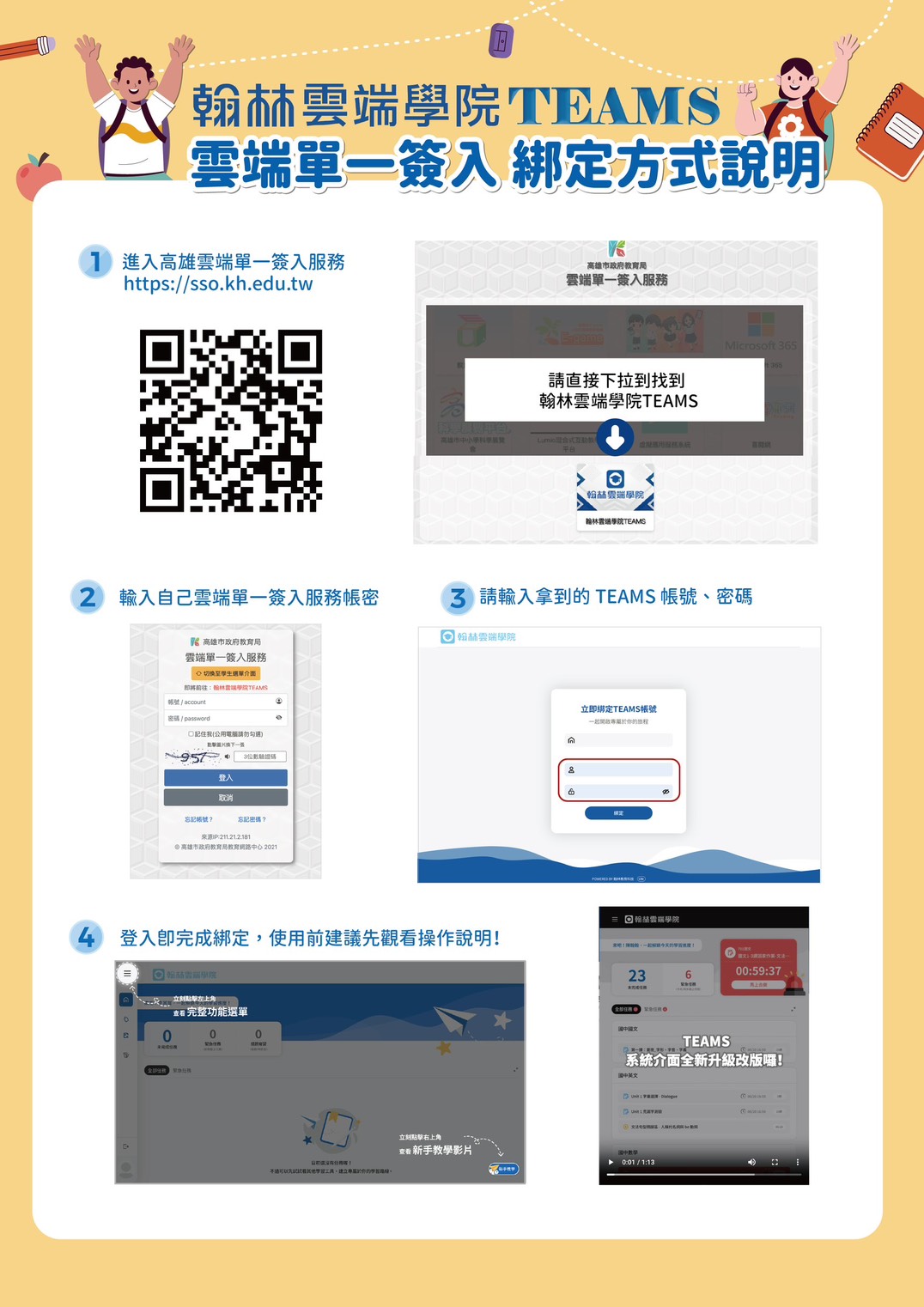 (一)因應高雄市政府教育局「推動中小學數位學習精進方案」,本局統一採購之軟體及平台將陸續改以高雄市單一簽入登入,原翰林建置之雲端帳號內學習歷程仍可保留,不受影響。