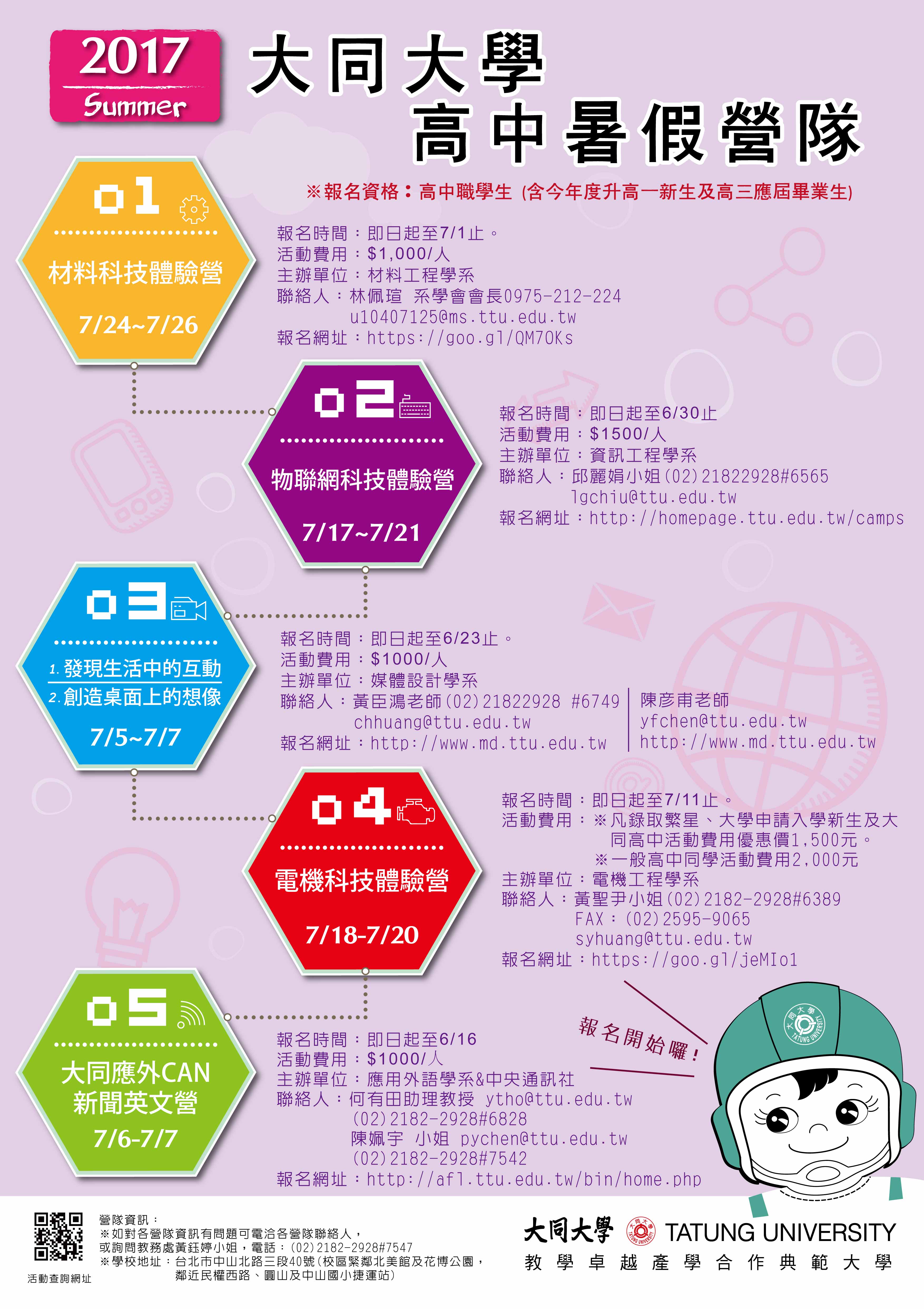 | 2017/05/25 大同大學辦理2017年暑假高中生主題營隊 |