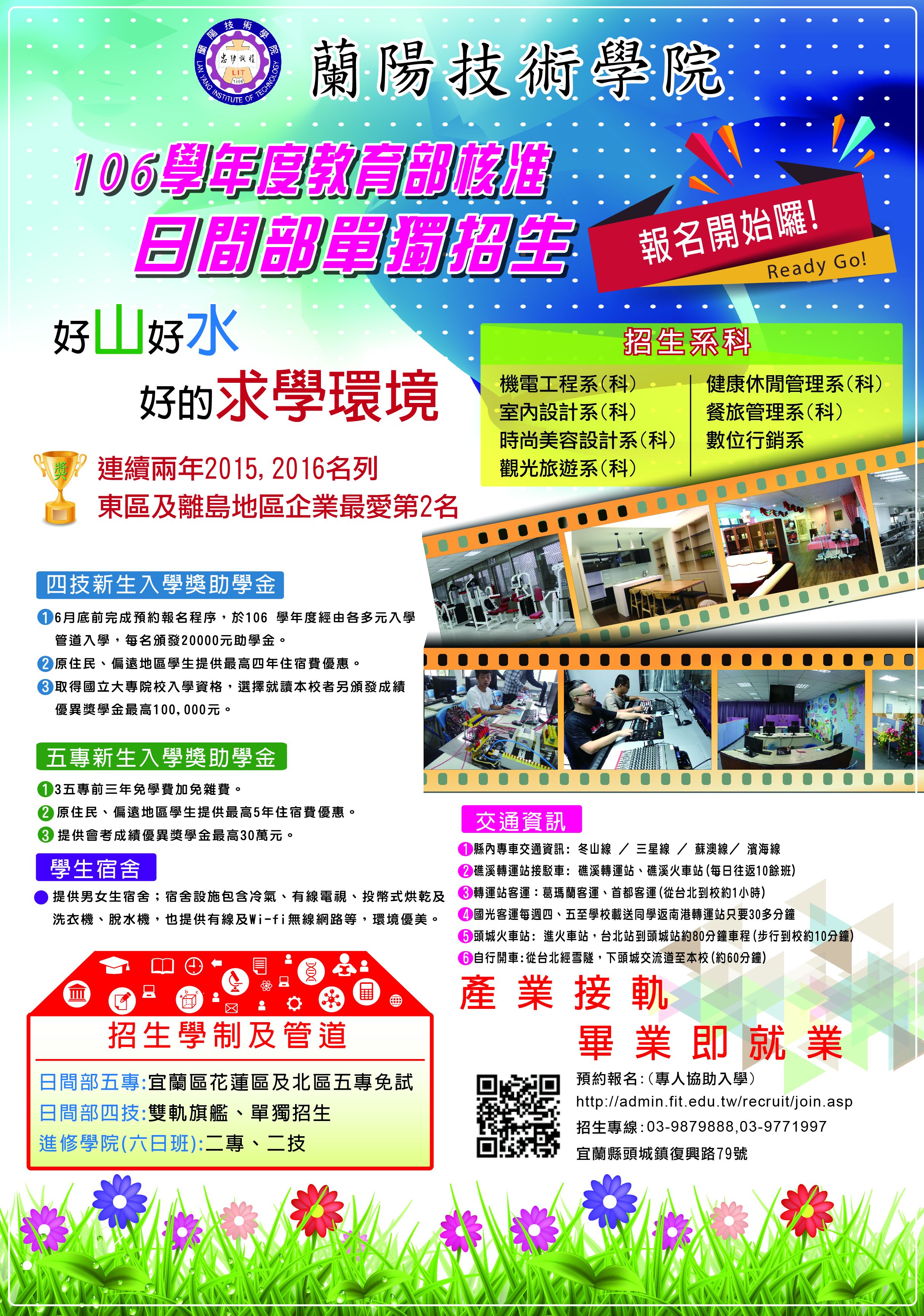| 2017/06/28 蘭陽技術學院辦理106學年度日間部四技單獨招生 |