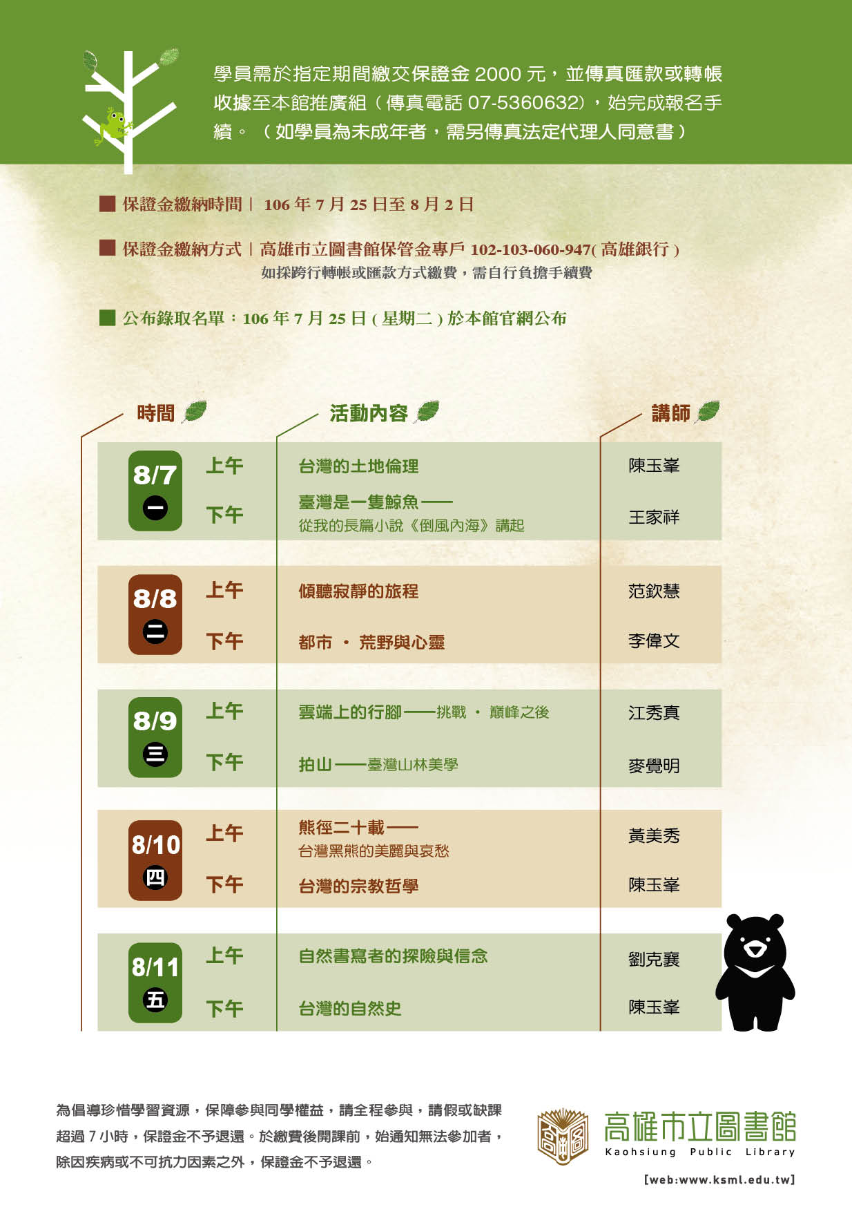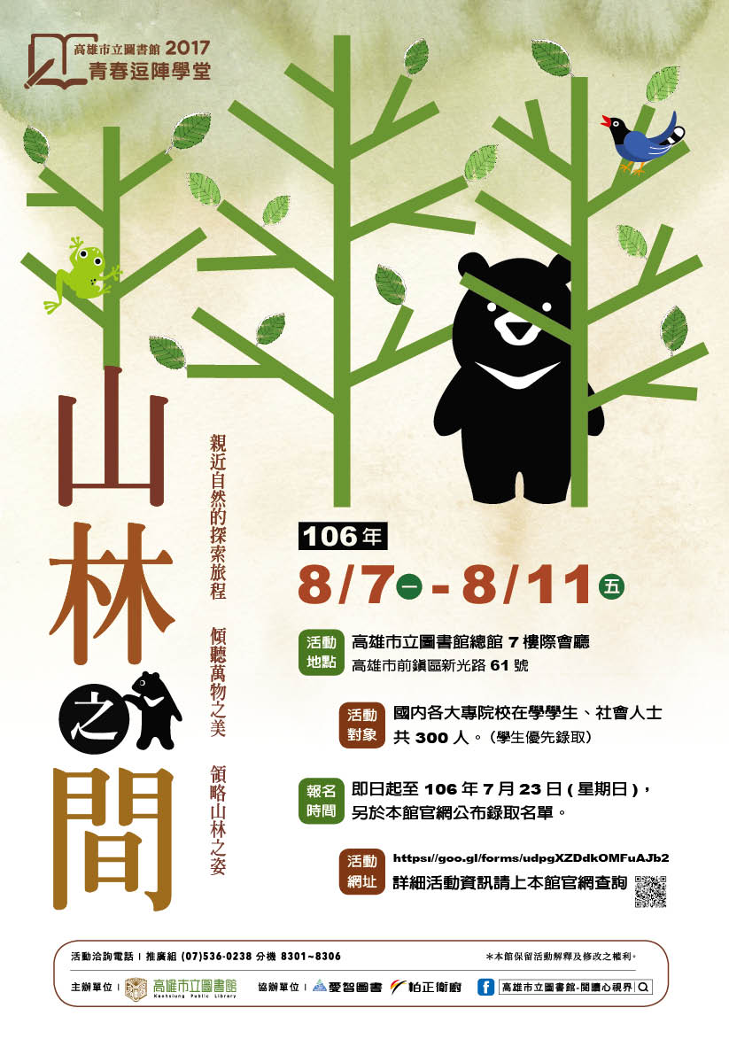 | 2017/06/28 高雄市立圖書館館辦理「2017青春逗陣學堂:山林之間」活動 |