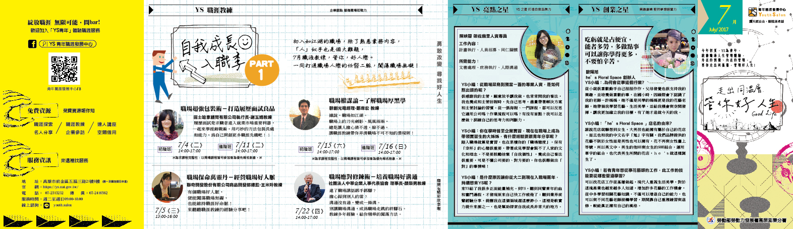 | 2017/06/29 「青年職涯發展中心」(Youth Salon,以下簡稱YS)106年7月活動DM,請踴躍參加。 |