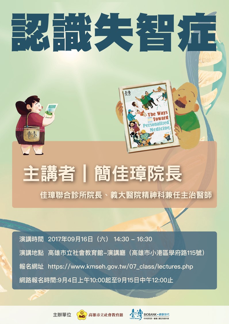 | 2017/08/30 轉知高雄市立社會教育館「認識失智症」與「遺產給他或給她?--當習俗遇上性別」講座 |