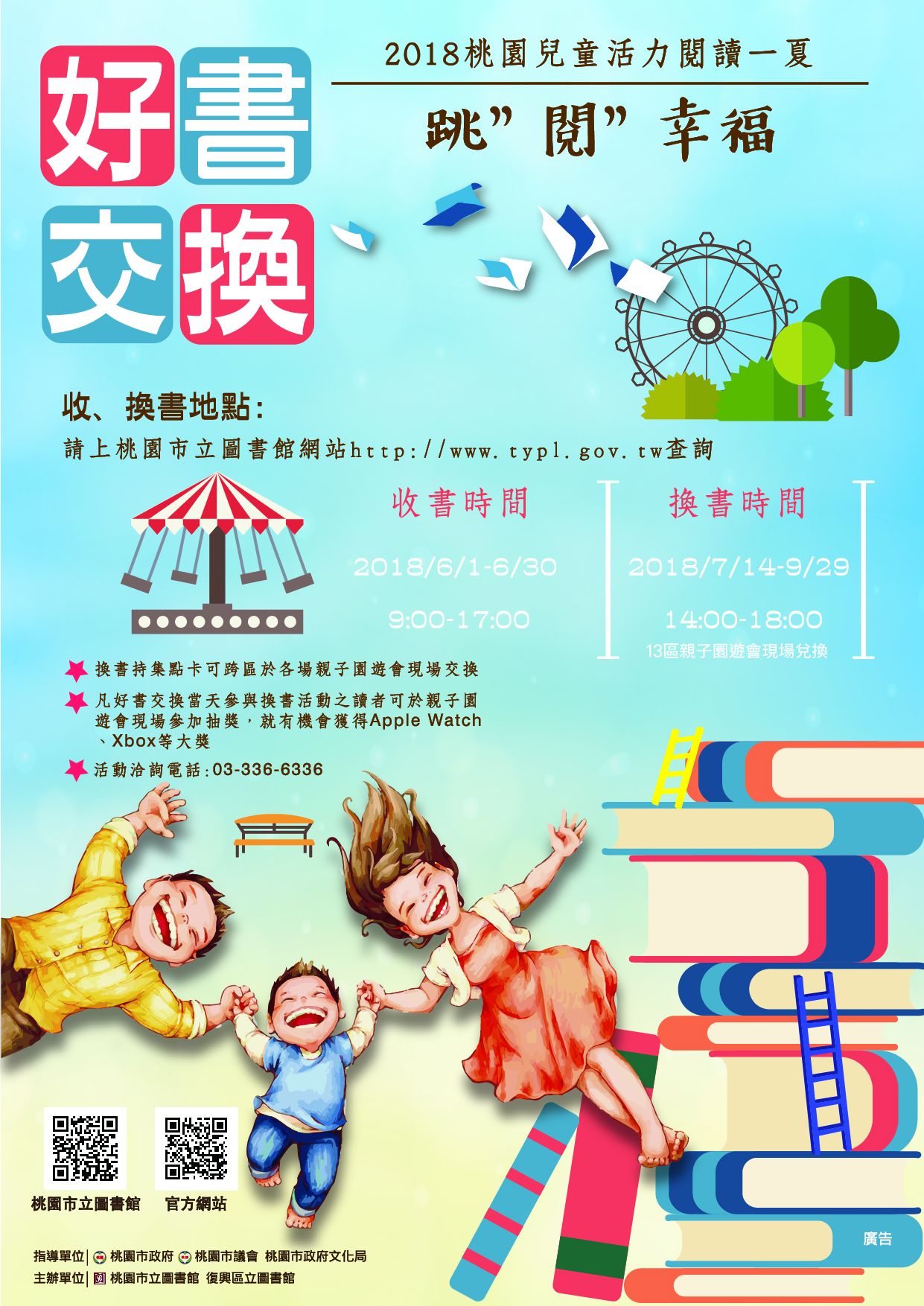 | 2018/06/22 轉知桃園市立圖書館「2018桃園兒童活力閱讀一夏」暑期閱讀系列推廣活動 |