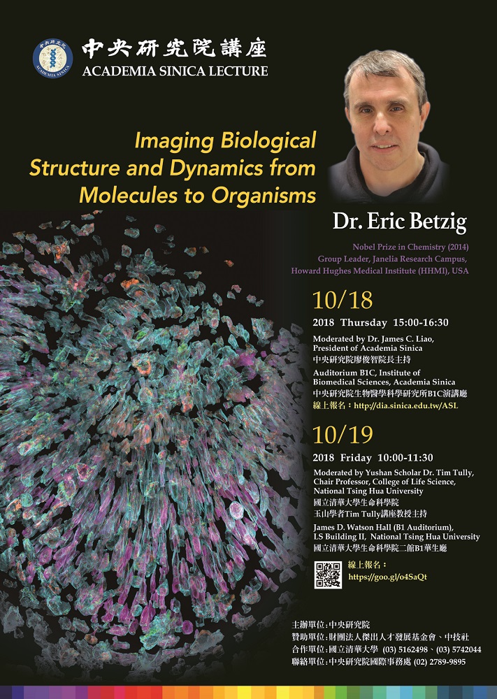 (一) 本次活動,邀請2014年諾貝爾化學獎得主艾瑞克.貝齊格博士(Dr. Eric Betzig)擔任演講者。貝齊格博士於2008年發表「超解析度螢光顯微鏡」,與斯特凡.W.赫爾、W.E.莫爾納爾共同獲得2014年諾貝爾化學獎。此超解析度螢光顯微鏡是一種奈米顯微鏡,可觀察到非常細微的生物結構,及細胞內部分子間的作用,為生物科學一大突破。
