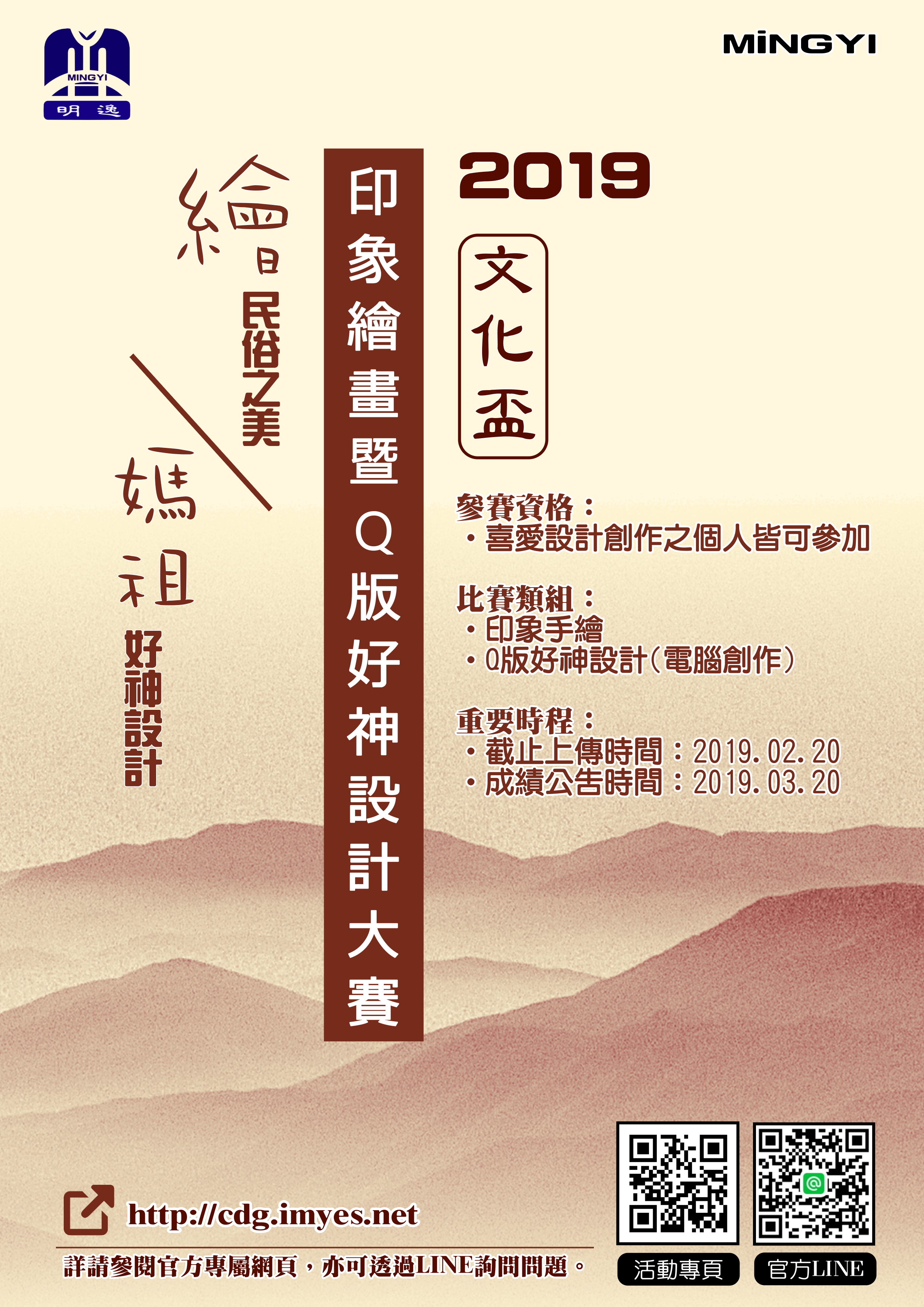 | 2018/10/22 2019 MiNGYI 文化盃印象繪畫暨Q版好神設計大賽 |