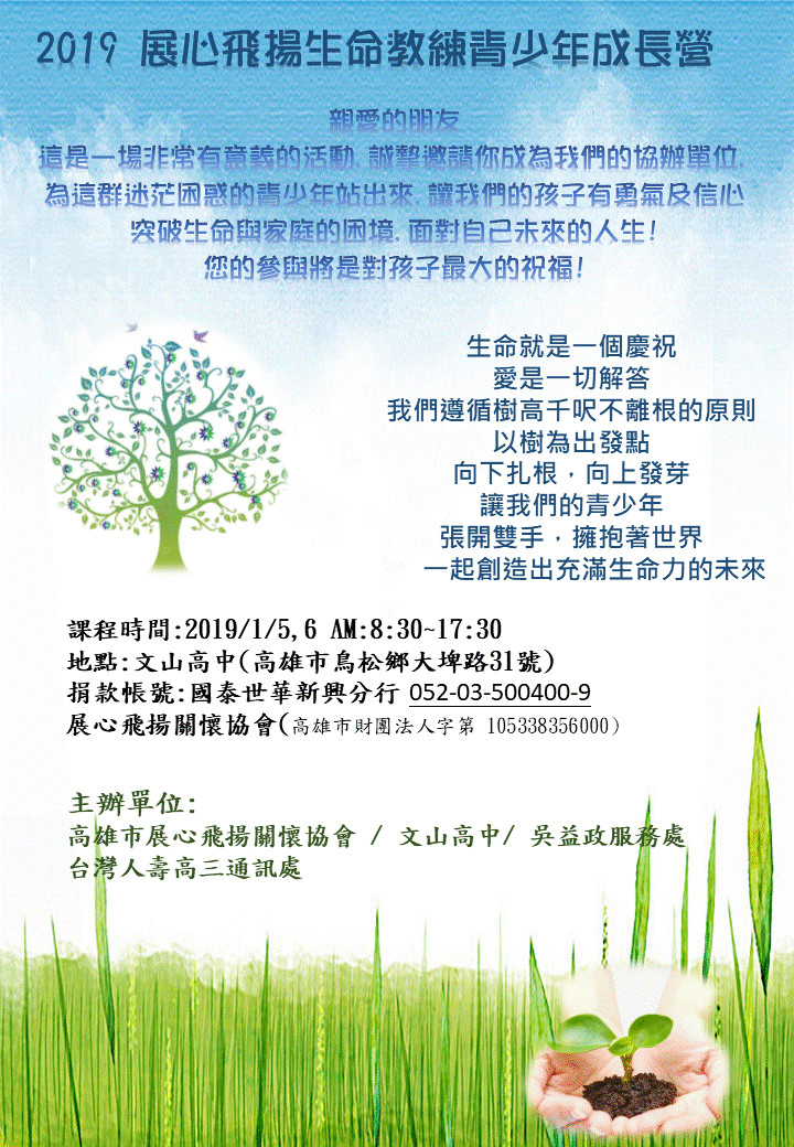 | 2018/11/29 2019 展心飛揚生命教練青少年成長營 |
