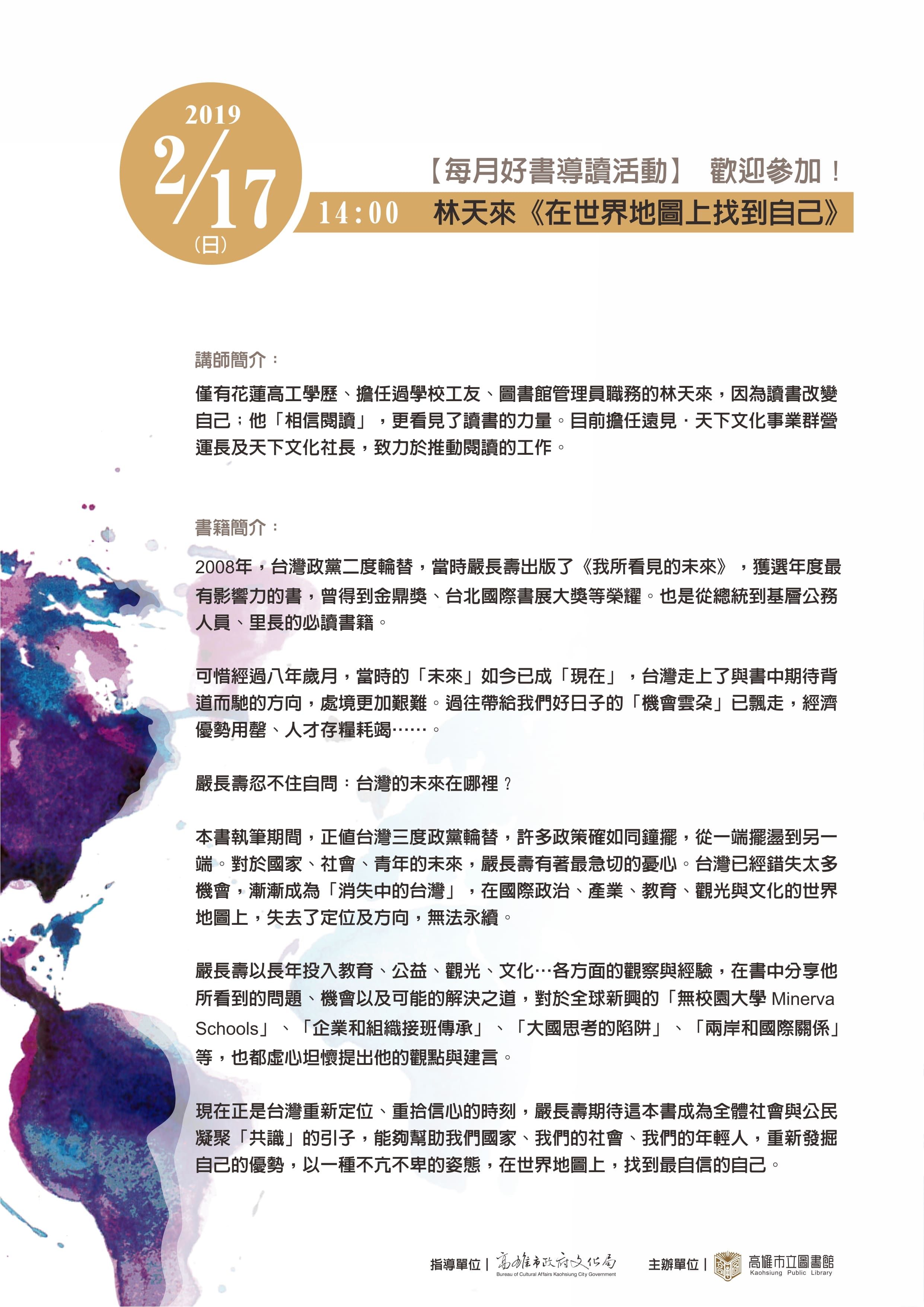 | 2019/02/13 轉知高雄市立圖書館辦理「每月好書」閱讀推廣活動 |