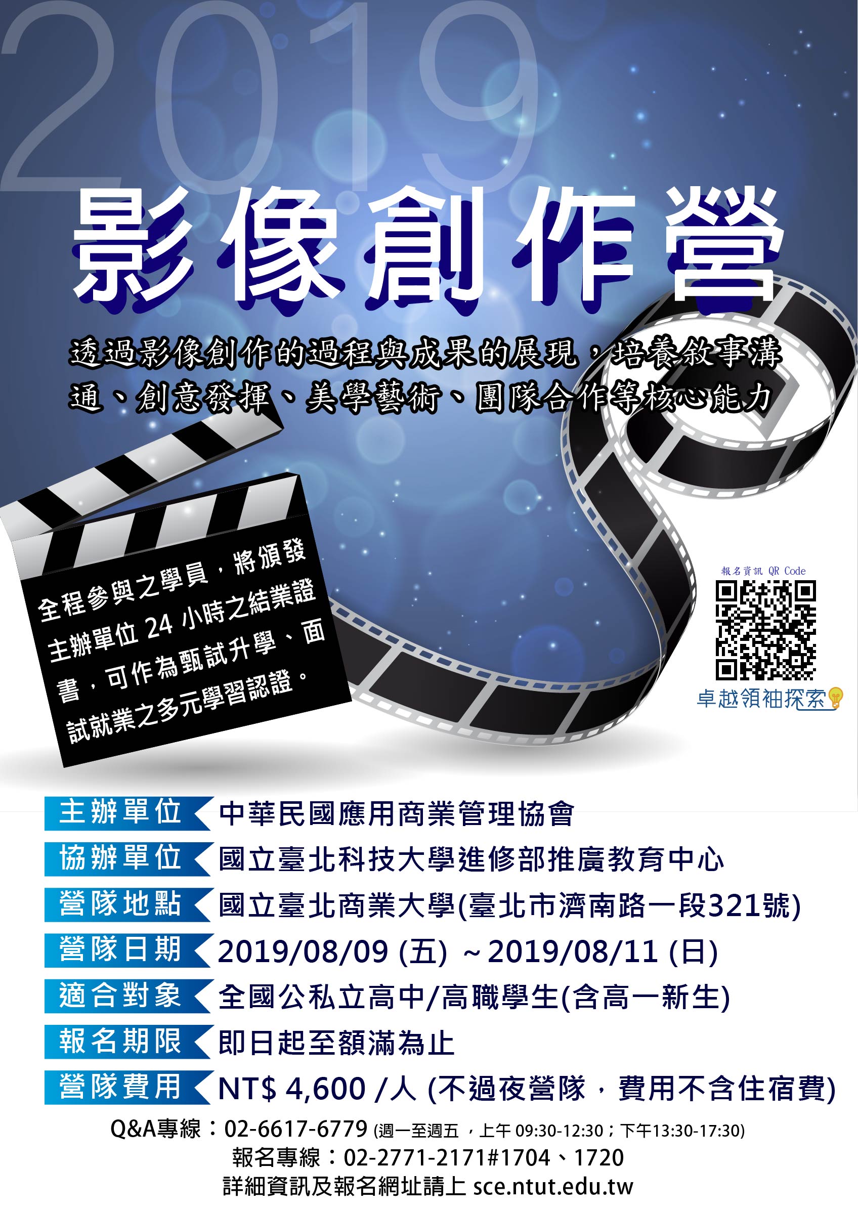 (一)影像創作營:2019年8月9日-8月11日。